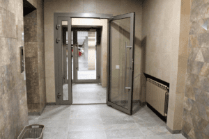 Входные двери типа с системой “антипаника” предпочтительнее, так как их можно легко открыть при ЧС. Это позволяет персоналу, находящемуся внутри, выйти из зоны горения после закрытия двери.